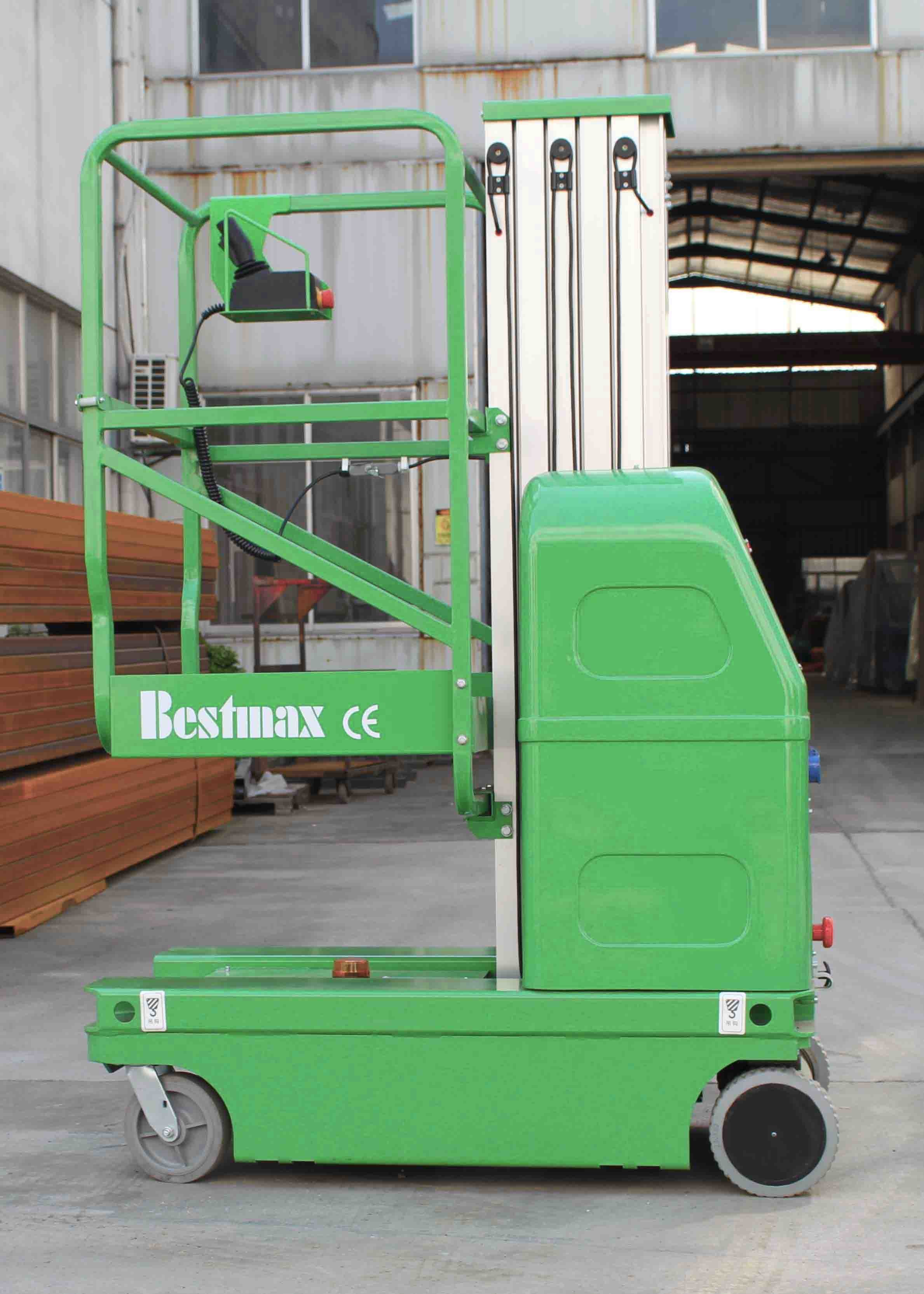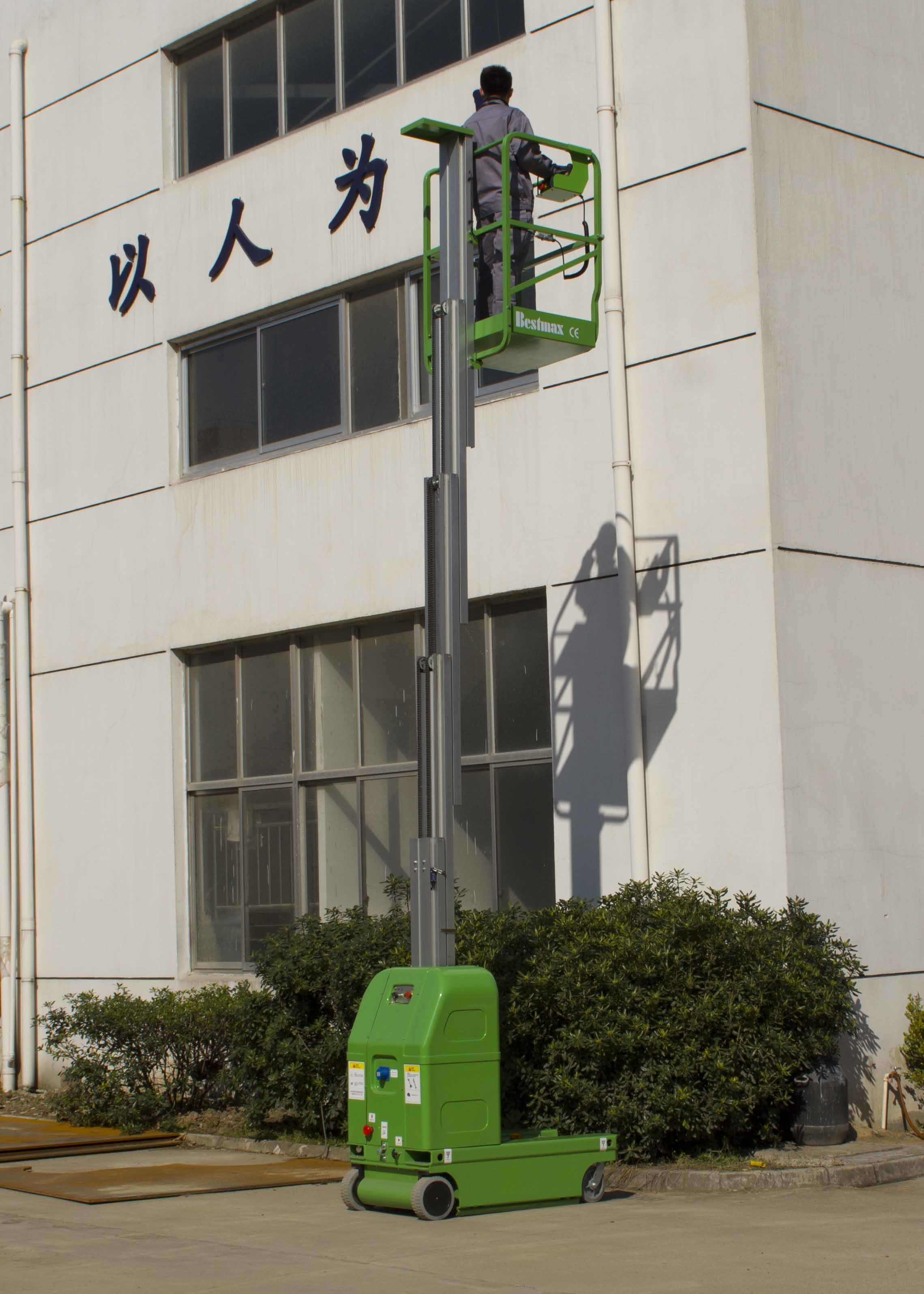 The aerial work platform is in mast structure with aluminum material