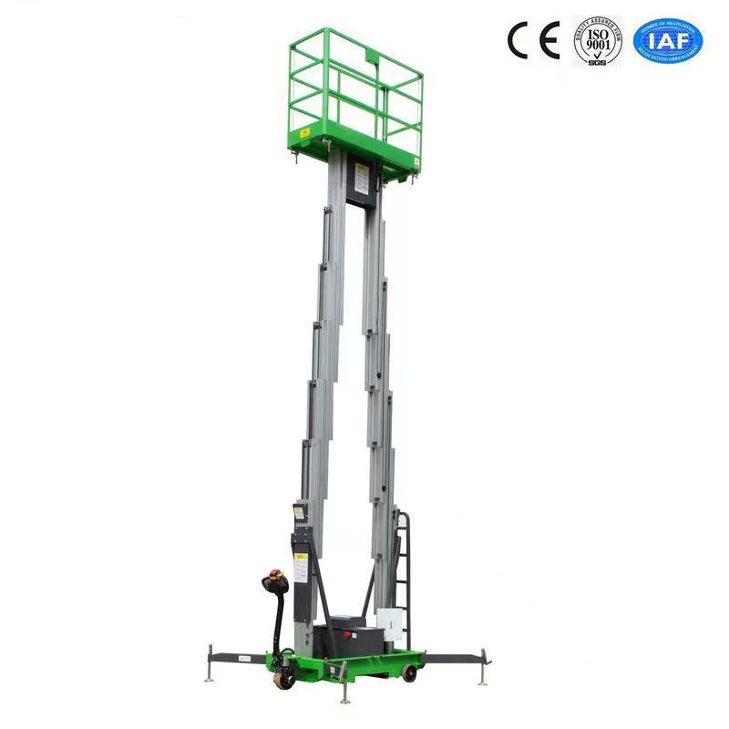 Bermotor Perangkat For12 Meter Dua Mast Ponsel Aluminium Aerial Work Platform Dengan 200Kg Memuat Kapasitas