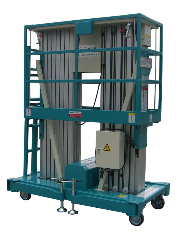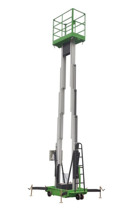 Ganda Platform Mast Aluminium Aerial Work memiliki bobot yang ringan, sehingga orang dapat bergerak dengan mudah. Anda tidak dapat mengangkat mesin jika mesin tidak dalam patung horizonal dan cadik harus sepenuhnya dibuka.
