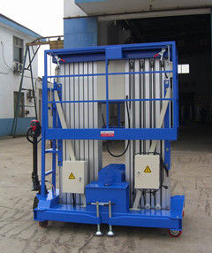 Platform multi Mast Aluminium Aerial Work cocok untuk satu orang untuk bekerja pada platform yang terdiri dari profil aluminium kelas tinggi dalam enam kelompok tiang mendukung platform mengangkat sinkron dengan empat tiang didirikan dikombinasikan dengan dua tiang atas. Hal ini juga dilengkapi dengan roda univeral, dua set panel kontrol dan tangga.